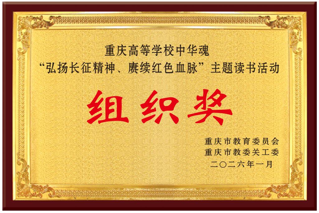 近日,重庆市高等学校2025年中华魂“弘扬长征精神、赓续红色血脉”主题教育读书活动获奖通报揭晓,我校共有47名学生获奖,其中演讲比赛获二等奖3名;征文比赛获特等奖1名;一等奖8名、二等奖15名、三等奖20名。31名指导老师获得“优秀辅导员”称号。我校再度荣获中华魂主题教育读书活动“组织奖”。